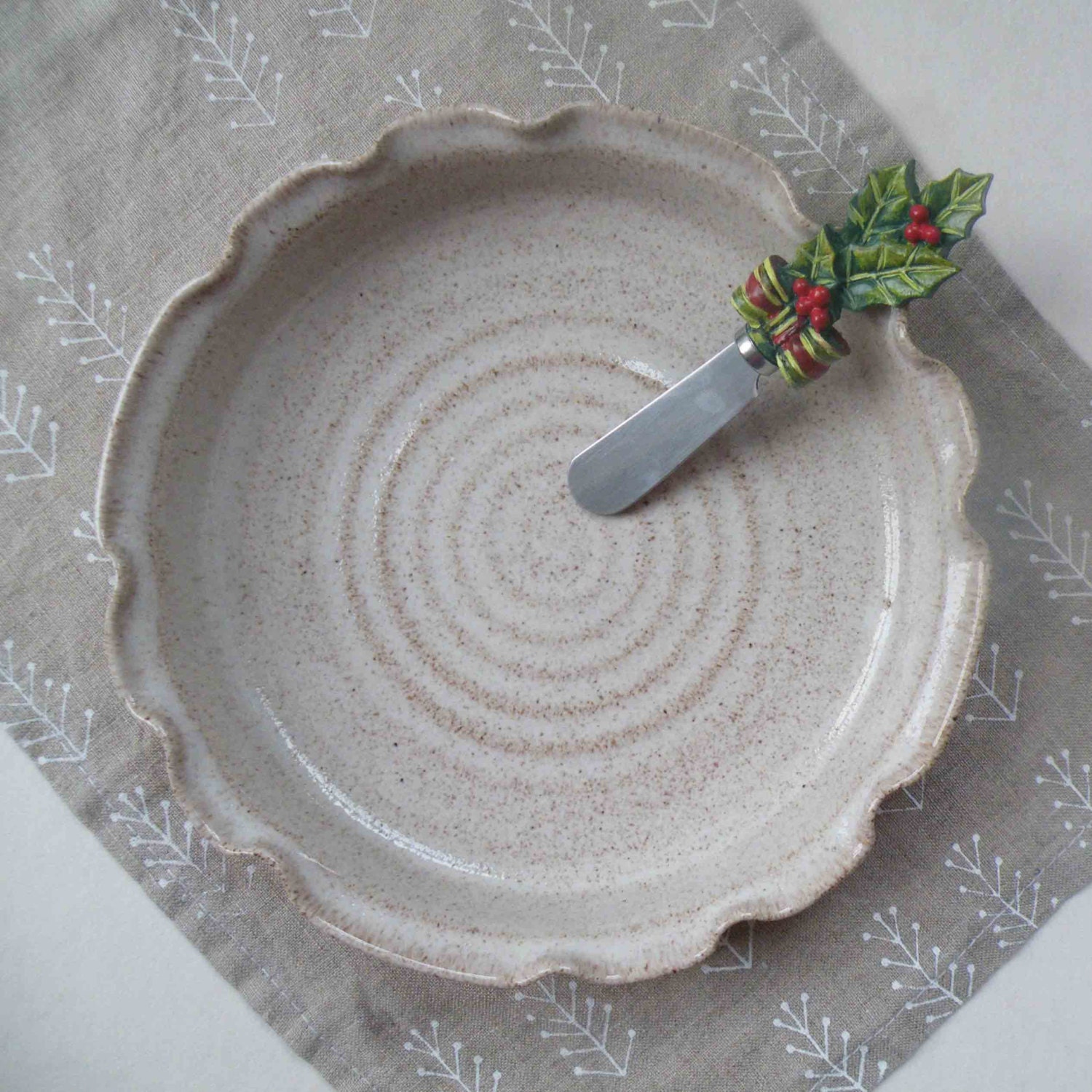 | 4 Stoneware baking dish with holly knife by JanFairhurstPottery |