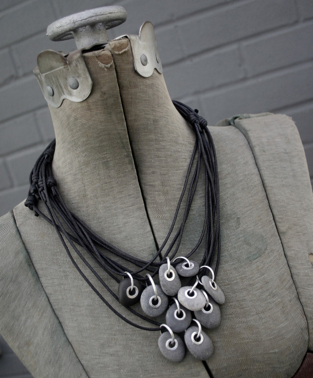 | 10 Silver Riveted Beach Stone Necklace by SToNZ |