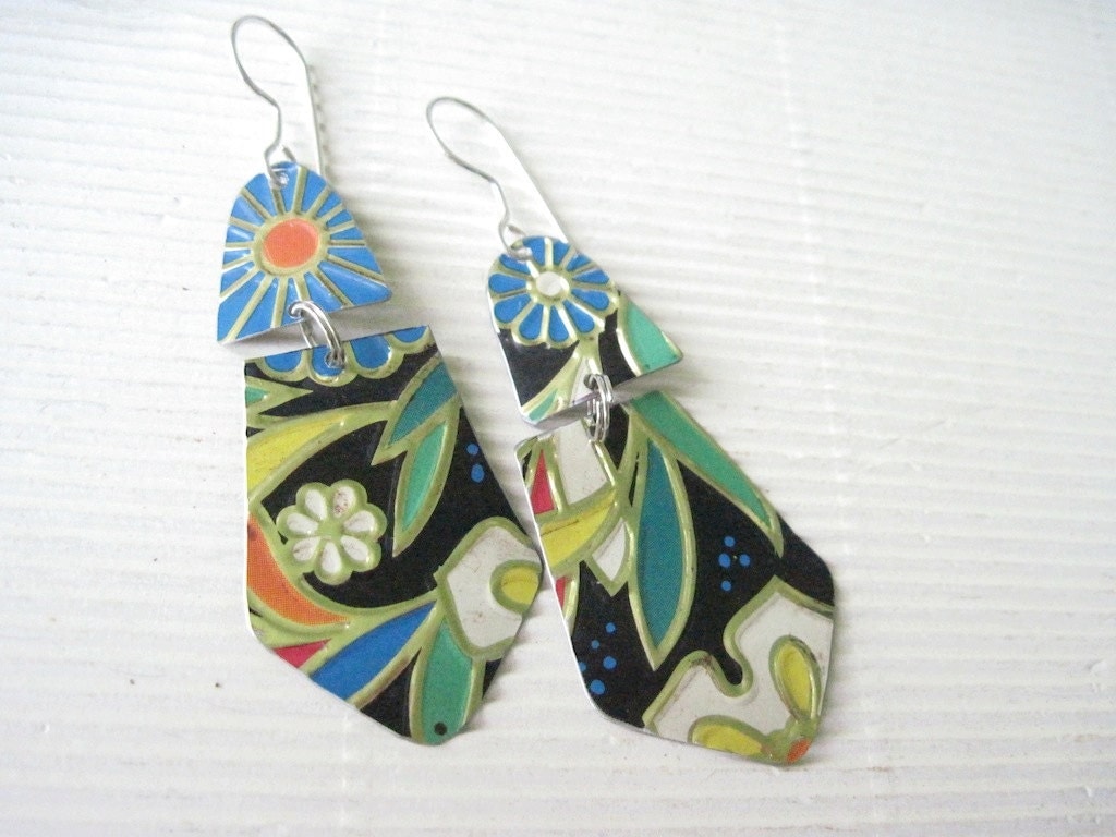 Flower Power 2 Earrings-Recycled Vintage Tin from eaststreettins - United States |