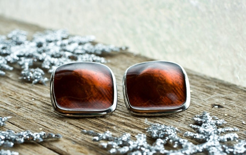 Vintage Amber Earrings, Amber Foiled Glass Post Back Earrings from NostalgicWarehouse - United States |