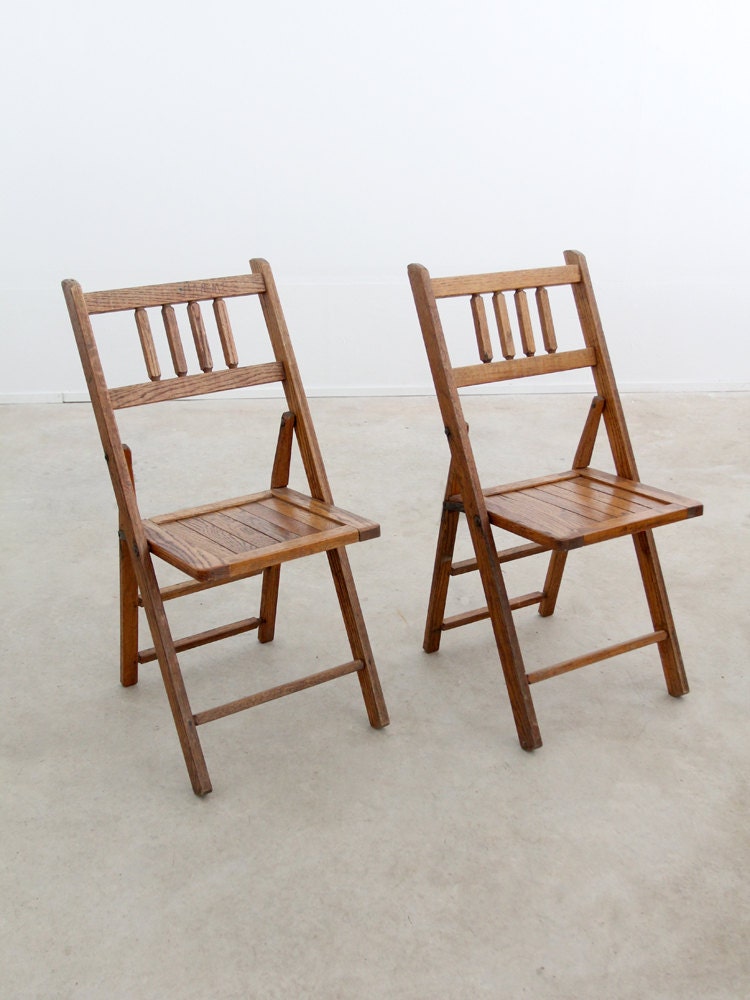 vintage oak folding chairs / slat wood school seats from 86home - United States |