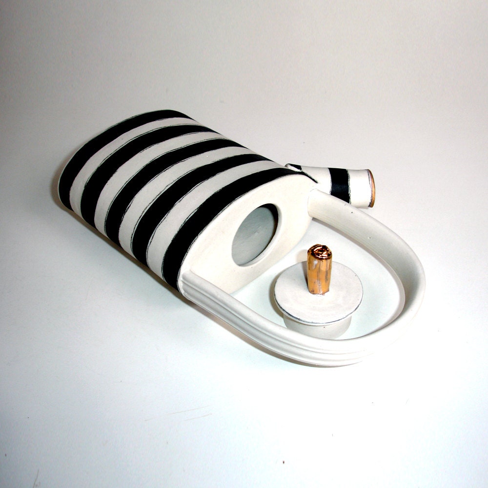 black and white striped porcelain teapot from gonetopottexas |
