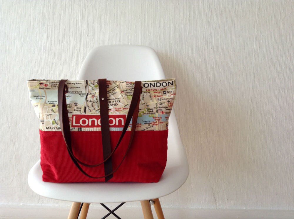 Tote Bag London map fabric and red corduroy - Limited edition bag from MeryBradley - Santiago, Chile |