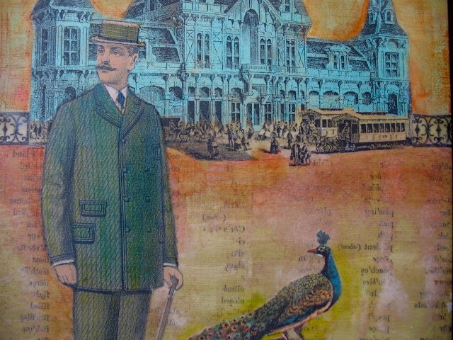 Hotel Peacock-Traveling Gentleman-collage art-victorian man-peacock-wall art-art, wall decor from luckduck - United States |