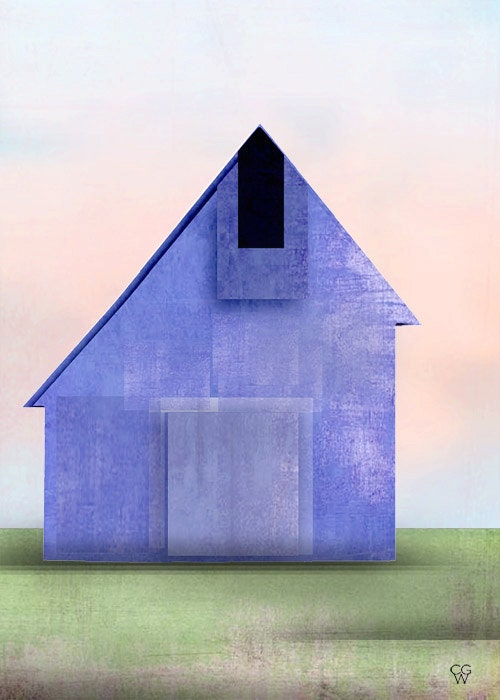 "Blue Barn" Minimalist Landscape Art Print from HighStreetVintage |