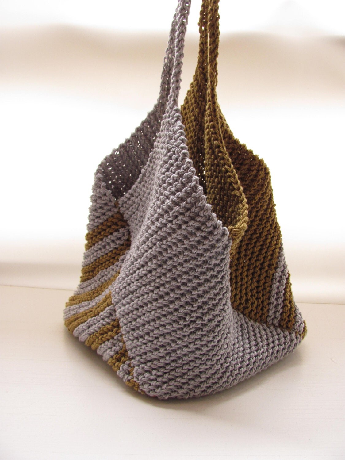 Knitted bag---Gray and green----- 100% cotton from AnnaLela - Israel |