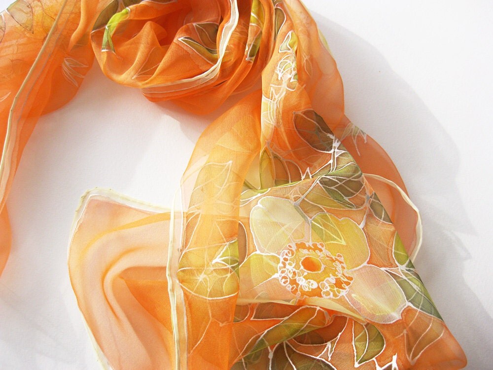 Orange Silk scarf hand painted on chiffon from DEsilk - Lithuania |