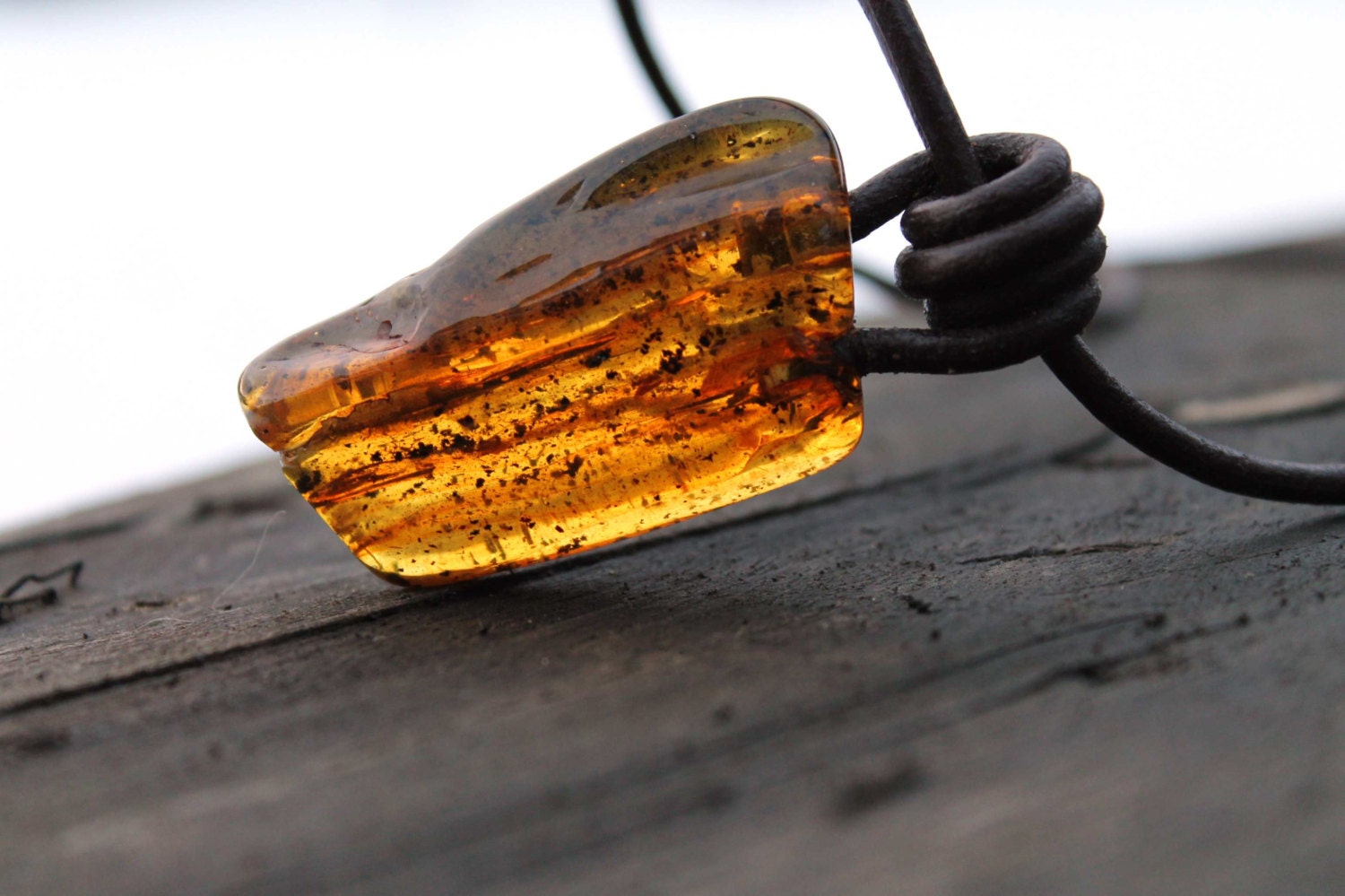 Men Necklace Pendant Leather Jewelry Amber Jewelry from DreamsFactory - Poland |