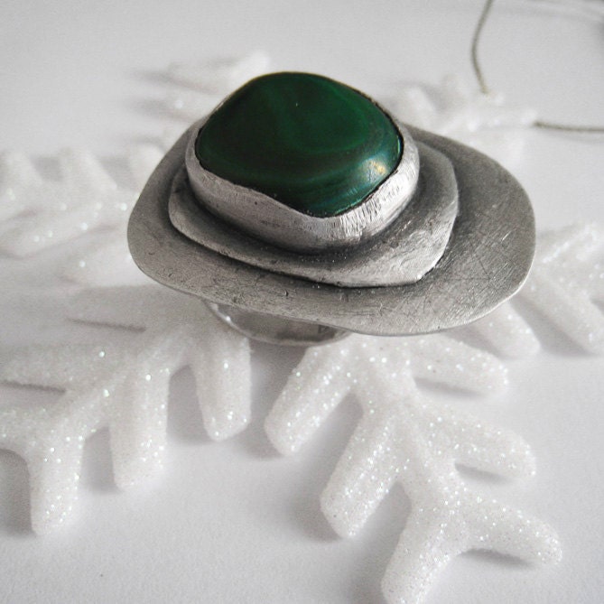 Malachite Ring Gemstone Statement Cocktail Sterling Silver from applenamedD - Greece |