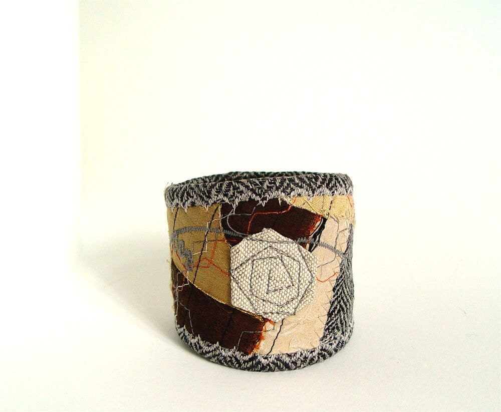 Silk bracelet, textile jewelry, embroidered cuff from BozenaWojtaszek - Poland |