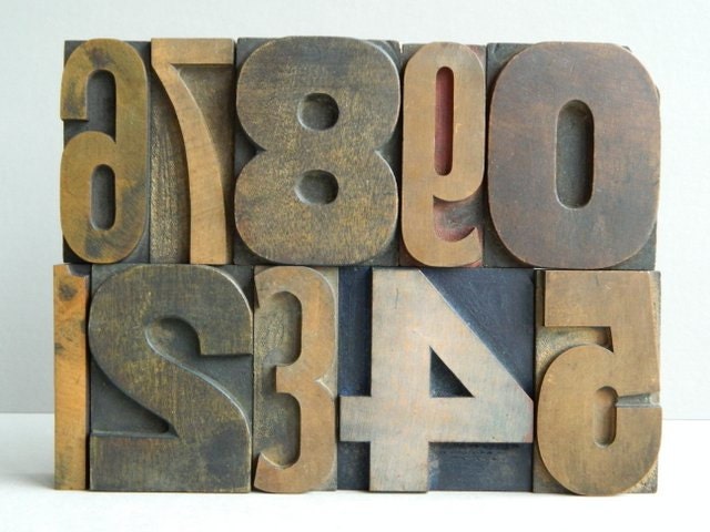 10-piece Set of Vintage Jumbo Wood Letterpress Type Numbers 0-9 from MonkiVintage |
