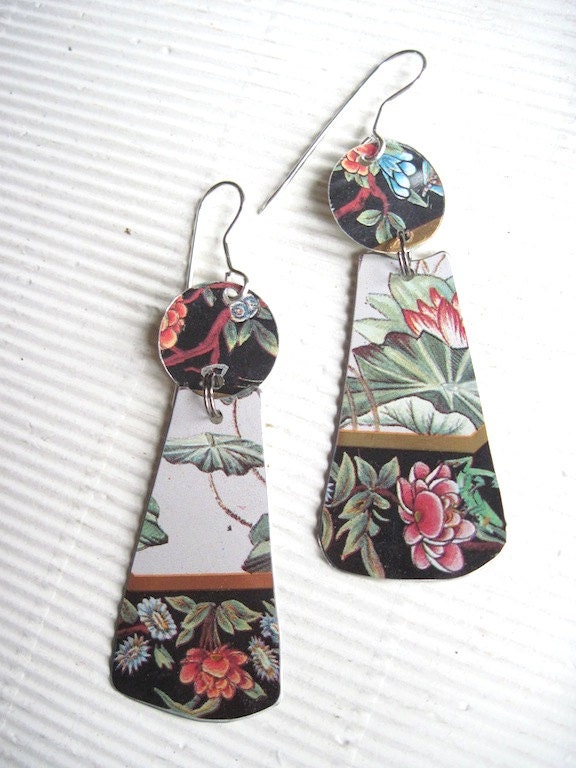 Lily Pad Vintage Tin Earrings- Lightweight Dangles Nature Design from eaststreettins - United States |