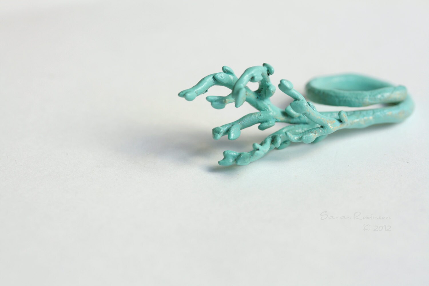 Mint Tree Branch Ring Green Enamel Brass by lachicadelosanillos |