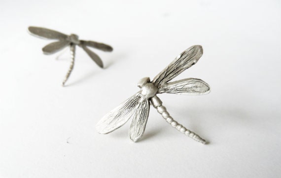 Dragonfly earrings Sterling silver studs by CyKLu |
